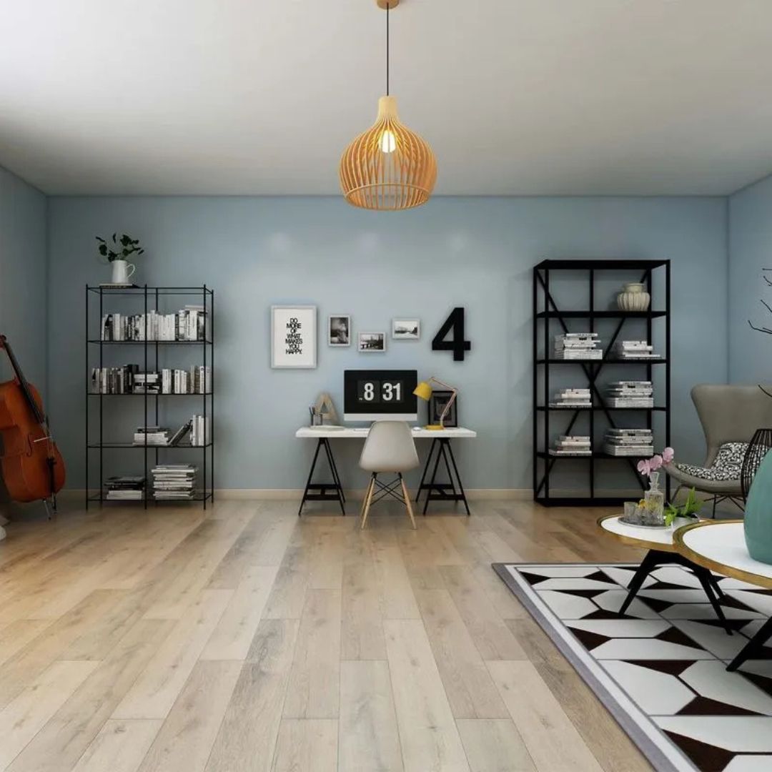 Material: Núcleo rígido SPC (Stone Plastic Composite) que imita la apariencia de la madera natural con mayor resistencia.