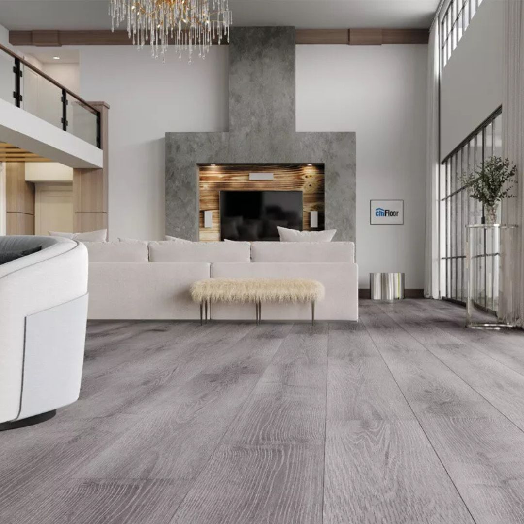 Material: Núcleo rígido SPC (Stone Plastic Composite) que imita la apariencia de la madera natural con mayor resistencia.