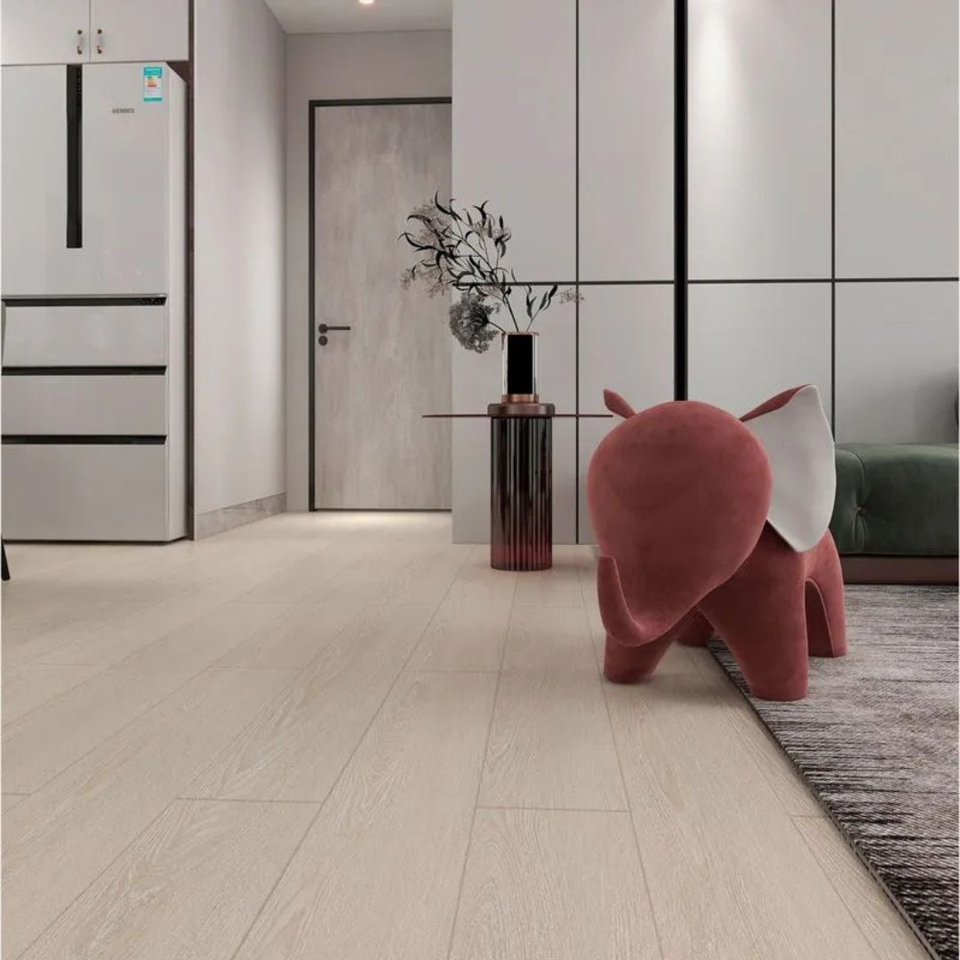 Material: Núcleo rígido SPC (Stone Plastic Composite) que imita la apariencia de la madera natural con mayor resistencia.